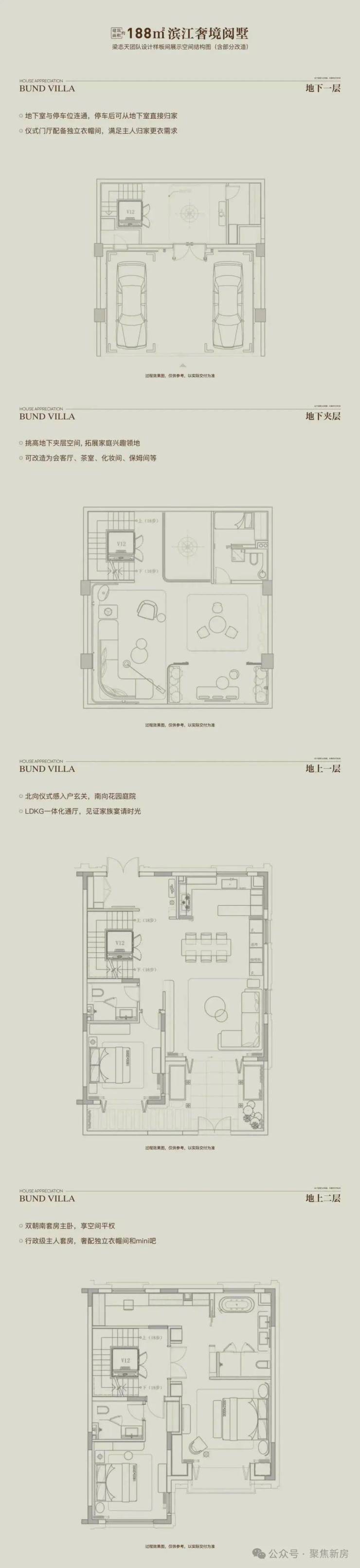 以“全两层+会所”的形态革新、花园露台地下室的全维空间、大面宽短进深的奢适格局,重构别墅生活场景。