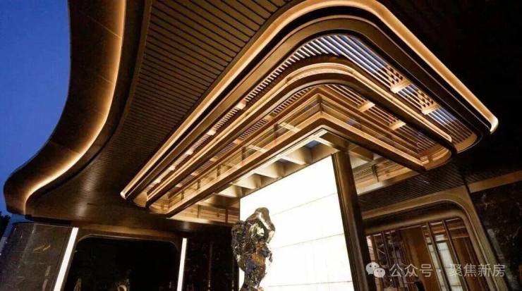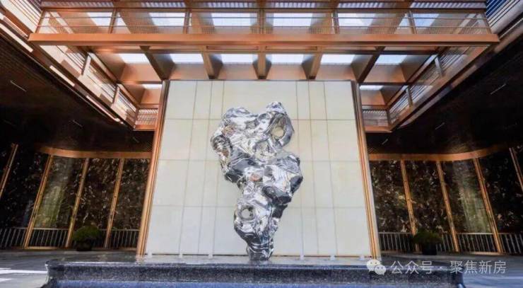 【外滩源著复兴里】以现代海派风格打造尊享仪式入口空间,门庭规制尽显典雅,为归家动线赋予满满礼仪感。大门中央“寻石问礼”主题造型雕塑,选用摩登海派高定材质,将传统意蕴与当代东方美学相融。