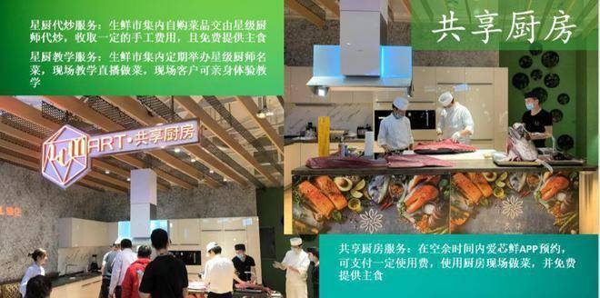 为了满足年轻消费群体的多元化需求,爱芯鲜增设“共享厨房”,提供星厨代炒服务,只要付几元到十几元不等的加工费,就可以把刚买到的食材,变成一份热乎饭菜。食材新鲜,现场烹饪,口味还可以定制。