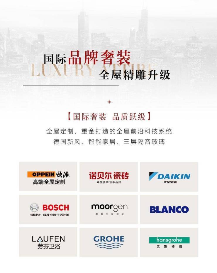 室内设计以奢华装修标准呈现,配备意大利进口家具,270度全景落地窗将陆家嘴三件套(上海中心大厦、环球金融中心、金茂大厦)及黄浦江景尽收眼底。