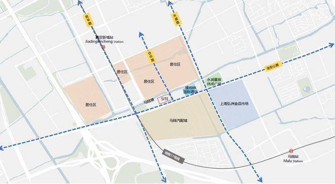 基地北侧为居住区,南侧为马陆汽配城和上海弘洲食品市场,东侧有酒店和休闲广场,均为大量人群聚集区,有较高的商业价值。