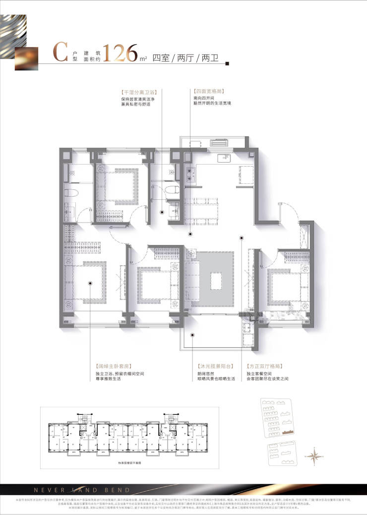得房率:96/100平 约75% 126平 约80%