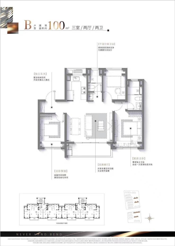 建面约:96㎡ 三房两厅两卫(高层)100㎡ 三房两厅两卫(高层)
