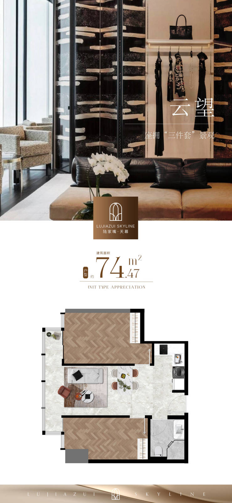 功能融合:空间内可规划江景会客厅、云端办公、红酒雪茄吧、艺术画廊、室内高尔夫等功能区域,兼具商务与生活属性。23