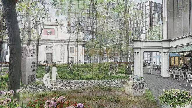 同时因地制宜,完整保留天主教堂历史风貌,修缮商船会馆历史建筑,打造滨江文化艺术广场,三大人文艺术空间交互共同呈现董家渡地区深厚的历史文化内涵。