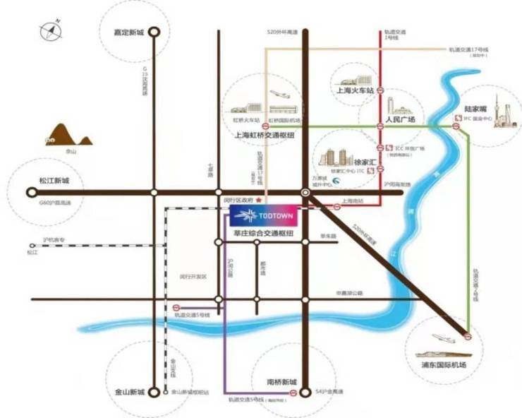 项目位于 上海新晋主城副中心——闵行莘庄,处于7000平方公里 虹桥国际开放枢纽范围的核心带,集约畅达的交通网络,在未来轨道交通将升级为5条,包括地铁1、5号线,嘉闵线、金山线、沪杭客专。除此之外,还坐拥S4沪金高速、S20外环高速及二十余条公交线路通达全市;G60、320国道等连接长三角城市圈,充分享受城市发展的红利。