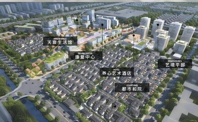 天宸国际社区南至梅州路,东起S4沪金高速,西至都莲路,总占地约400亩,是涵盖精品酒店、康复医院、九年一贯制学校、艺术商业街区和健康多元化产业社区。