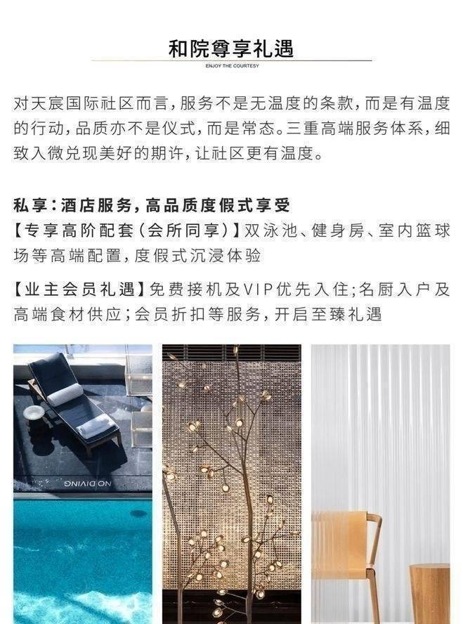 2. 开发实力:天宸股份与仲盛集团联袂,400亩高端社区,配超五星酒店、康复中心,24小时管家服务。现房,豪装交付。