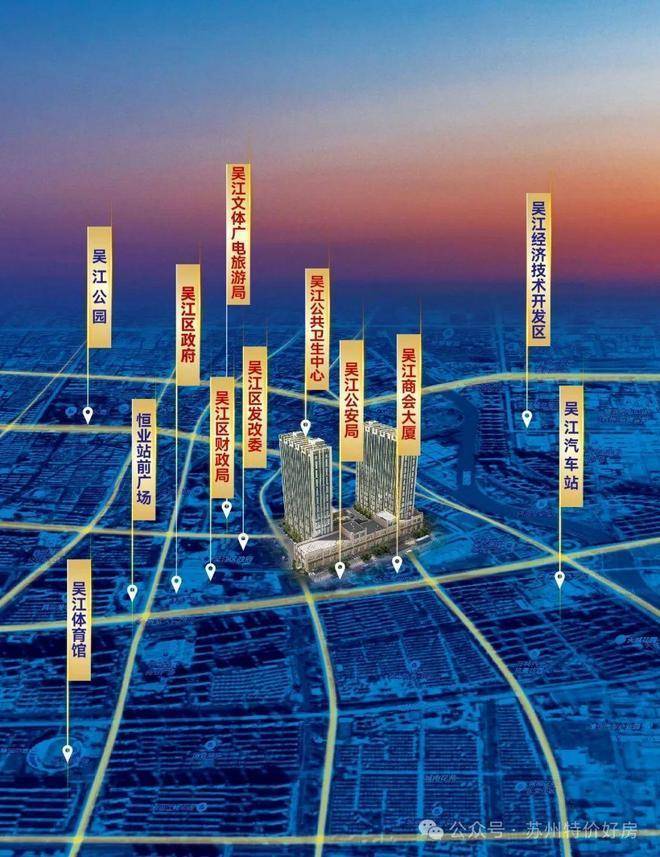 吴江区作为国家战略长三角一体化优先发展示范区,占据苏州南部门户核芯位置,成就城市价值新高地;项目落位吴江主城核芯区,毗邻吴江区政府,中芯地段占位一城主场。