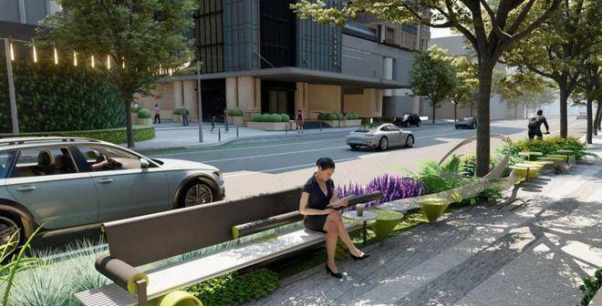 比如, 项目在街边的转角、街区的外廊,打造城市花园长廊;还有45度角贯穿的街区的超级绿核枢纽,中兴公园的绿意被充分引入中心广场,将成为开放且亲密的城市打卡点。