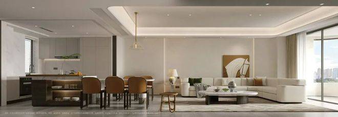 这造就了 客厅及主卧超4米面宽放大社交空间尺度;同时 客餐厨阳台一体化厨房可开可合,下厨时也能和家人情感互动 约270°弧形观景阳台,给予居者宽广的视觉享受。