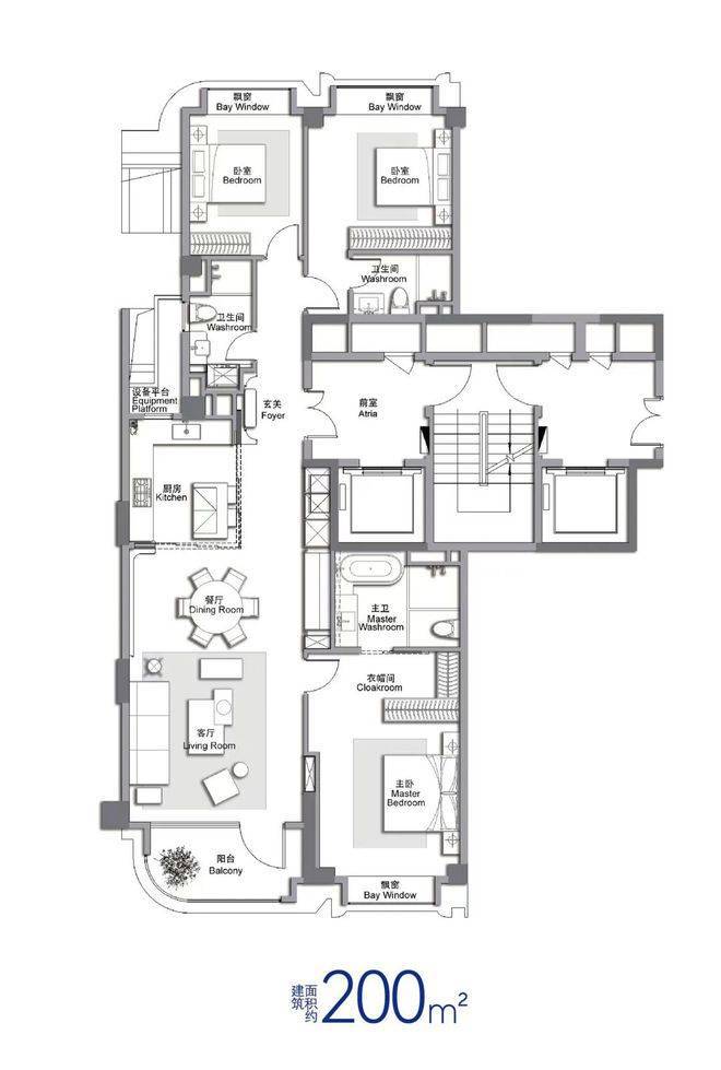 ✔其中建面约200㎡大三房,拥双主卧套房,南向主卫更带豪华卫浴四件套;
