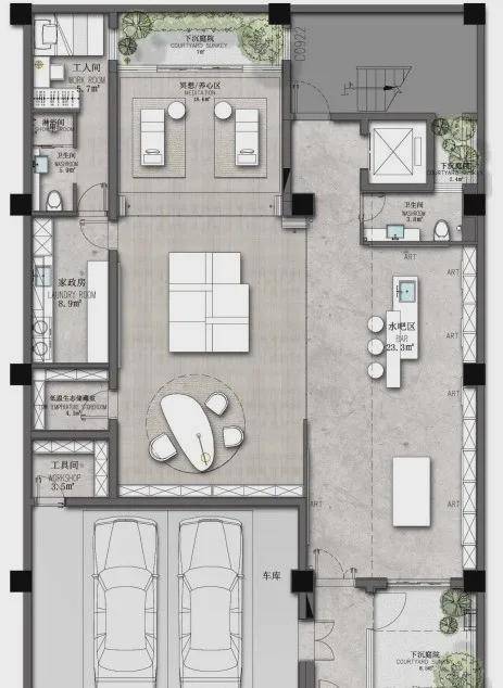 ⑤地下室设计6米挑高客厅、附有下沉式花园采光天井、豪华装修交付标准、带电梯
