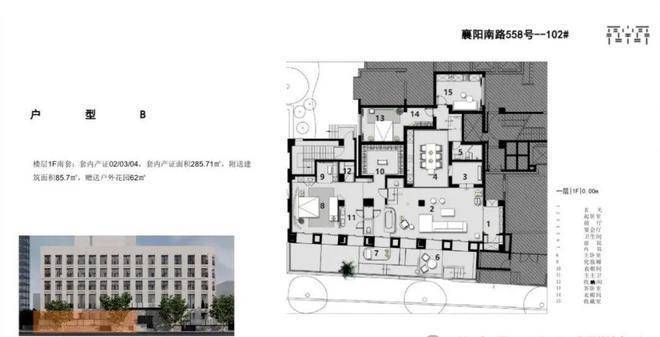▲ 285.71㎡丨3室3厅2卫2花园丨赠送面积85.7㎡丨赠送户外花园62㎡