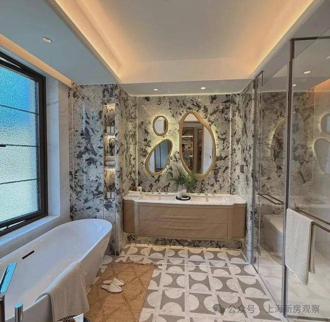 社区内设有上海风情的“三院”、海派精奢的三花园,让优雅的生活氛围随之铺展开来。下沉庭院整体长约18米,进深约9.5米,庭院的上下景观通过水帘相连通,中间结合有着层层叠水的水景,搭配水晶砖的景墙,将品质感拉满。