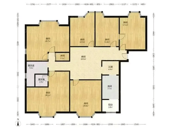 建筑面积:244.49平(五房,六房均可)