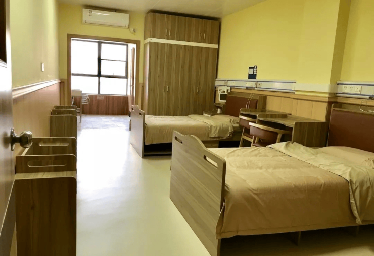 适老化设计:全楼层铺设防滑地胶,走廊宽度达2.4米,房间配置智能护理床、毫米波雷达跌倒监测系统。