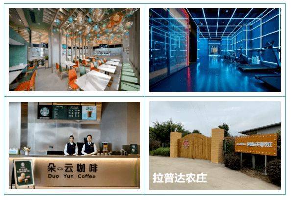 从左至右,从上至下依次为:餐厅、健身房、咖啡厅、农庄,餐厅周末免费为业主提供三餐