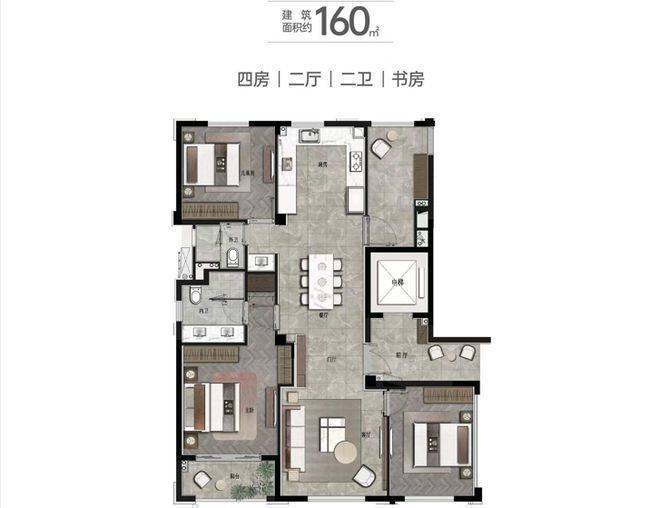 160㎡ 四房二厅二卫