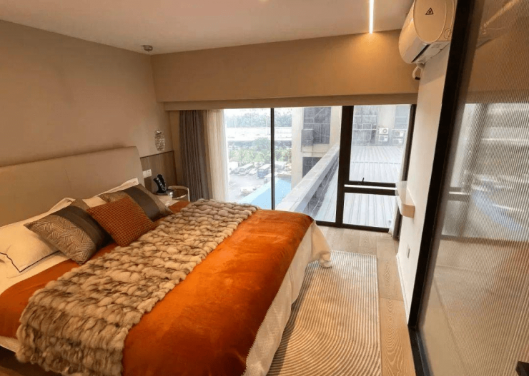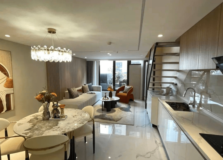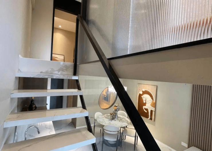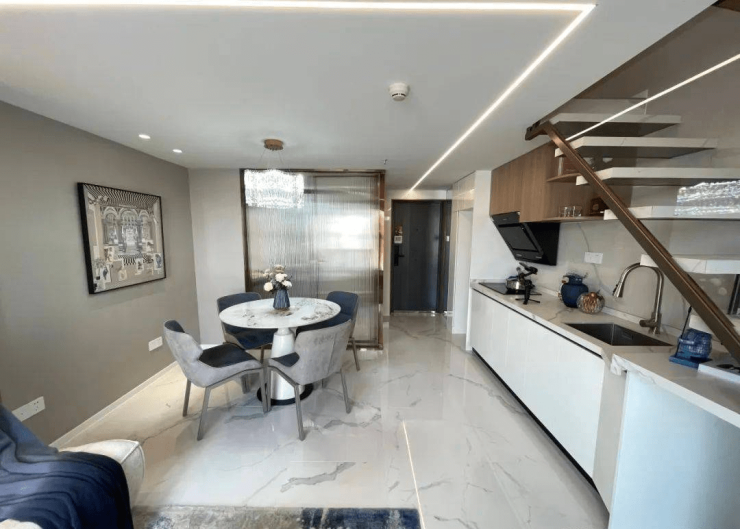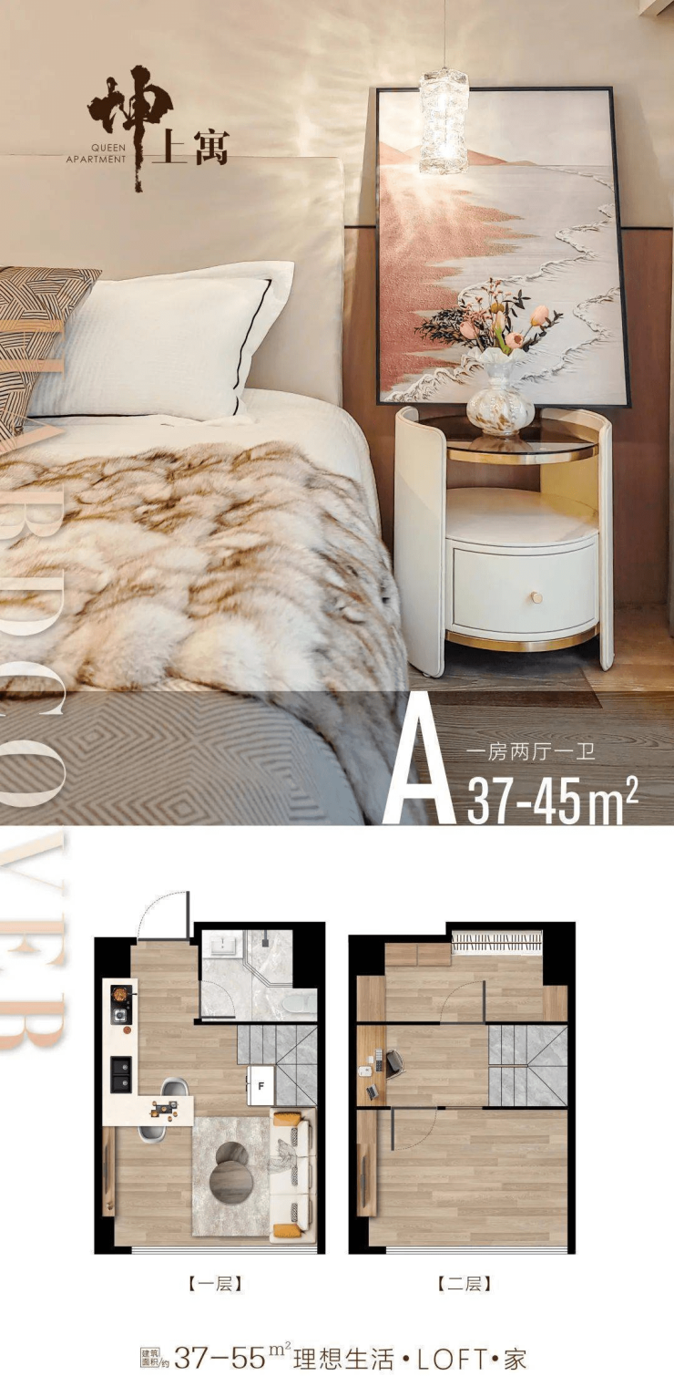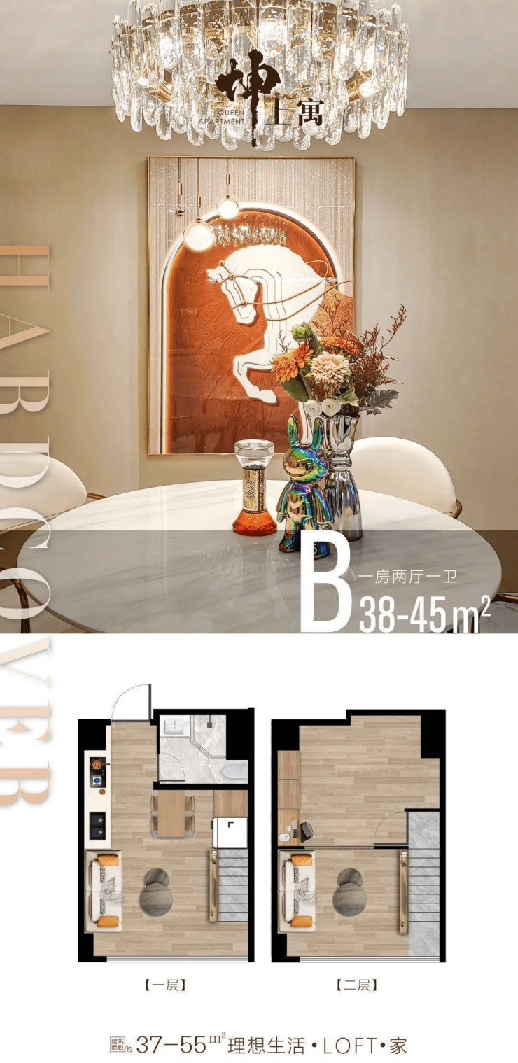 坤上寓是一个层高5.2米的复式公寓产品,产权50年,总高12层,单层层高5.2米,3梯38户,在售面积段在37-55平,精装全配交付。作为上海中环带为数不多的层高超过4.5米的小户型公寓产品,坤上寓有很强的竞争力,无论是自住过渡还是投资都值得考虑。