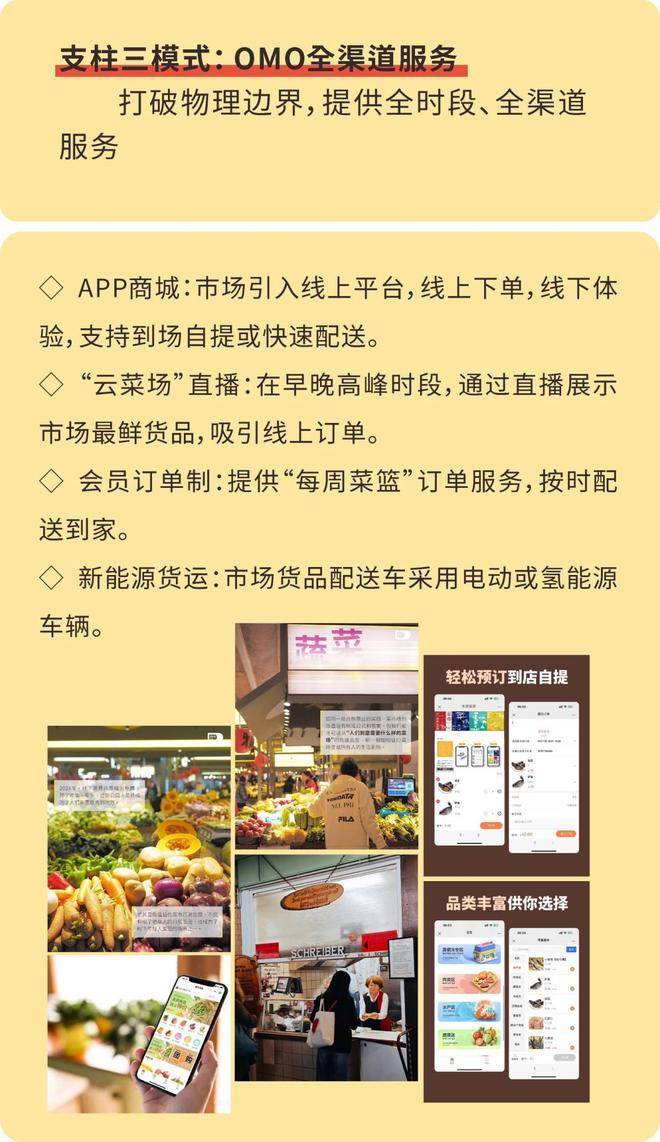 蔬菜、水果、肉类、水产/海鲜 、活禽/蛋类、熟食、调料、医疗健康、餐饮娱乐为一体的综合民生服务中心。