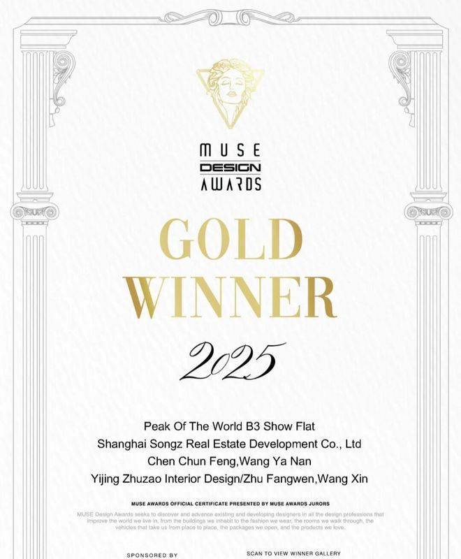 铂金奖作为该奖项的最高荣誉,仅授予85分以上的顶尖作品,全球获奖率不足5% ,能在此赛事中脱颖而出,足见峰度天下B3样板房设计的卓越不凡。