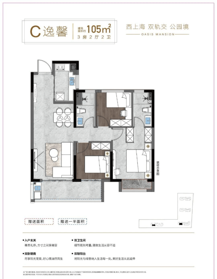 内外公园,项目内部罕见超高绿化覆盖,让居者享受时刻被鲜氧环绕的生活;奢阔楼间距,打造IMAX级无遮档宽幕视野;更有上下双大堂礼仪入户,尽享归家的尊崇仪式感。