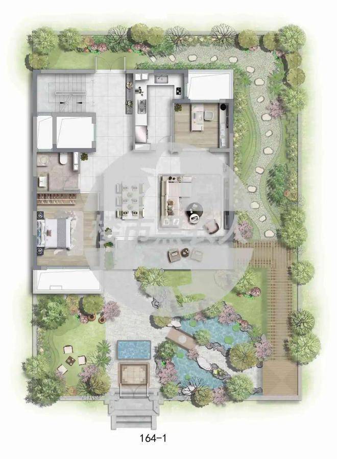 大宅后花园,采用了 围合式 的建筑结构,有 泗水连廊 、有 金鱼戏水 ,彰显中式大宅的典雅大气。