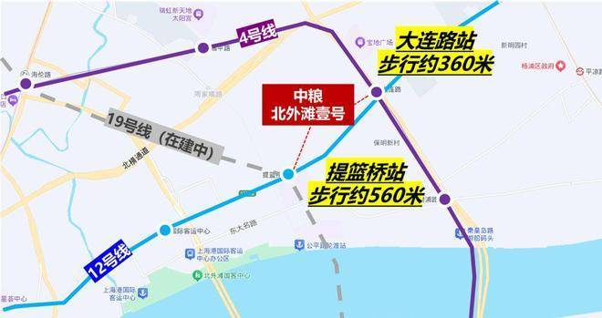 交通方面:项目周围环绕三条地铁,步行约360米到4、12号线大连路站,步行约560米到12、19号线(在建)提篮桥站。