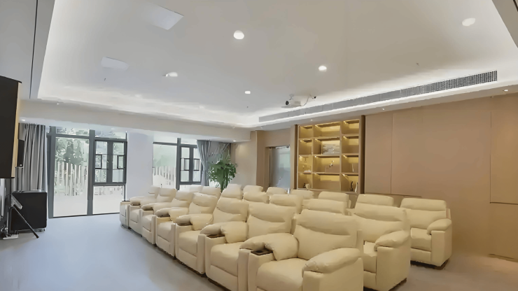 所有房间全屋圆角家具、防滑地砖、感应夜灯、L 型安全扶手,细节满满;独立卫浴配备助浴椅、智能马桶,三重紧急呼叫系统全覆盖,突发情况一键响应;单 / 双人间均带采光窗或阳台,通风干爽,电动护理床、智能温控系统一应俱全,兼顾舒适与安全。