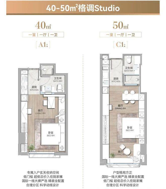 由于公寓较普通住宅 空间组合更加灵活 ,PARK699在户型上也获得了更多的施展空间: 既有40-50㎡(建面)入门级一房、也有80-100㎡(建面)基础级两房、还有140㎡(建面)旗舰级两房 。甚至如果业主有其他需求,它还可以像是施展空间魔术一般,继续灵活组合。