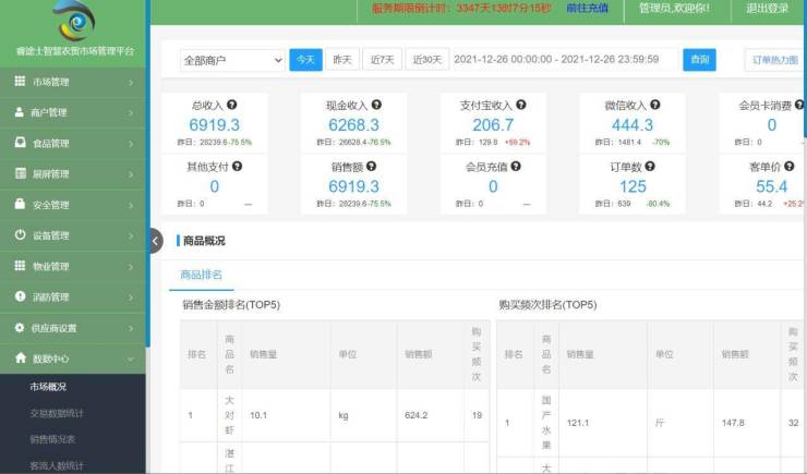 利用技术手段,在实现食品安全,保护消费者权益、提升消费体验的同时,优化经营模式,助力营收增长,市场运营方提升市场管理水平和效率。