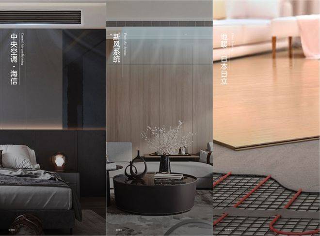 甄选国际一线品牌,打造精奢全装典范。标配三大件:中央空调、新风系统、地暖(日立或同等大牌),精选国际知名品牌,尽享奢华品质。