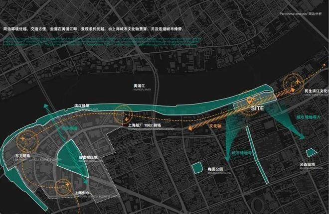 地块独占陆家嘴滨江约1.5km岸线,南面是万科翡翠滨江、西侧陆家嘴壹号院、恒大滨江华府,东侧民生路渡口。
