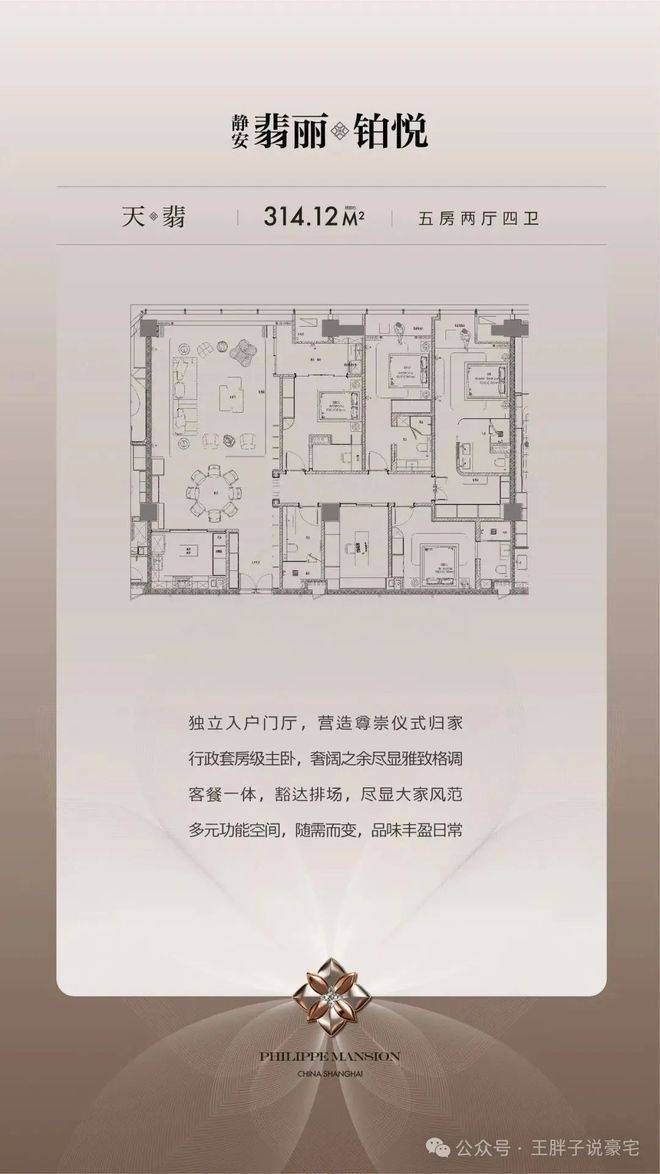 天翡户型:约314㎡|5房2厅4卫(独立入户+3套房)。