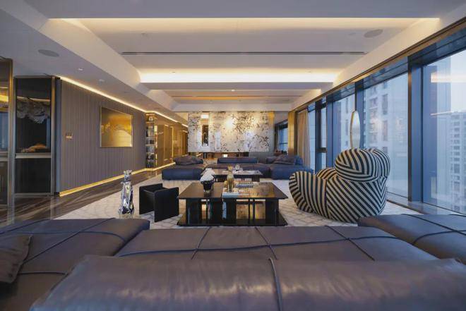 古北中央公园壹号公馆的大平层,不像别墅一样强调垂直空间,而是更注重整体的大空间和平面感。俯瞰广阔的城景,带来的不仅是身份的尊崇感,还有生活品质的进阶。