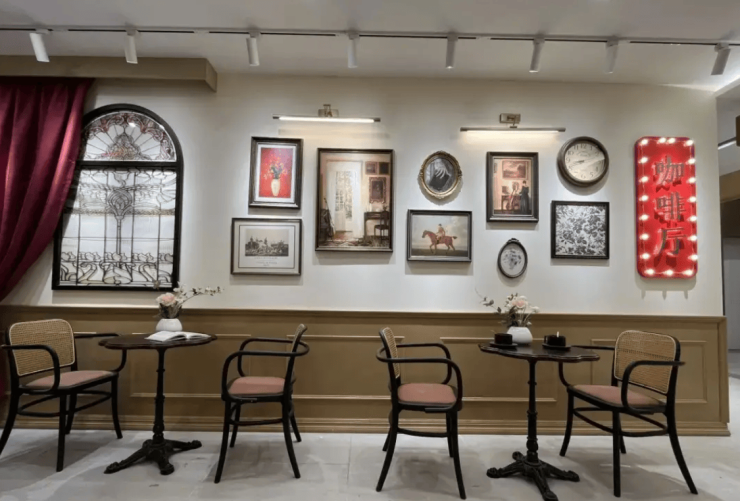 颐养院总建筑面积达1.8万平方米,核定床位378张,以“老上海怀旧”风格为设计主线,墙面彩绘海派风情图案,长者餐厅以老上海建筑照片为背景,转角处复刻老式烟纸店与咖啡厅,通过空间叙事唤醒长者情感记忆。房间内全屋采用圆角家具、防滑地胶(防滑系数0.8,超国标30%)、智能感应夜灯,卫生间配备扶手与淋浴椅,部分房型增设智能护理床、空气净化设备、独立阳台等。公共区域的无障碍设计同样细致:走廊宽度达1.8-2米,确保轮椅通行顺畅;智能声控设备支持窗帘、灯光及电视“随叫随开”,降低长者操作难度。