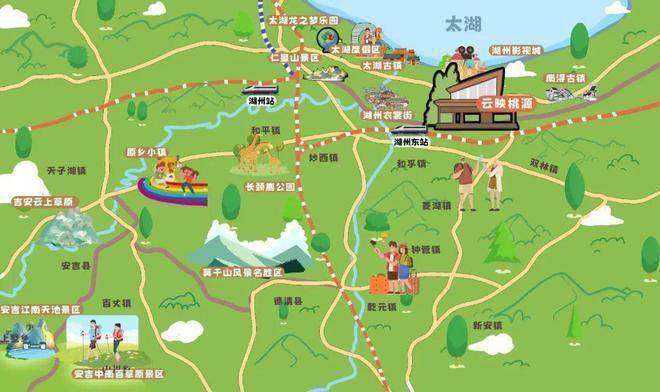 三、以项目为中心,辐射1小时游玩范围,有太湖旅游度假区、南浔古镇、湖州长颈鹿庄园、西山漾湿地公园等,涵盖了自然、文化、亲子、休闲等多种类型的游玩地点。