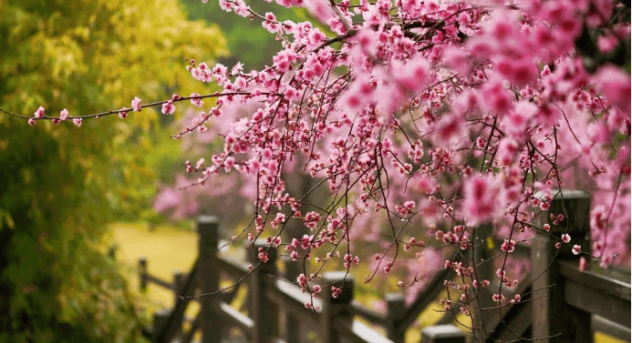 当樱花雨落满小径,银杏金毯铺展湖畔