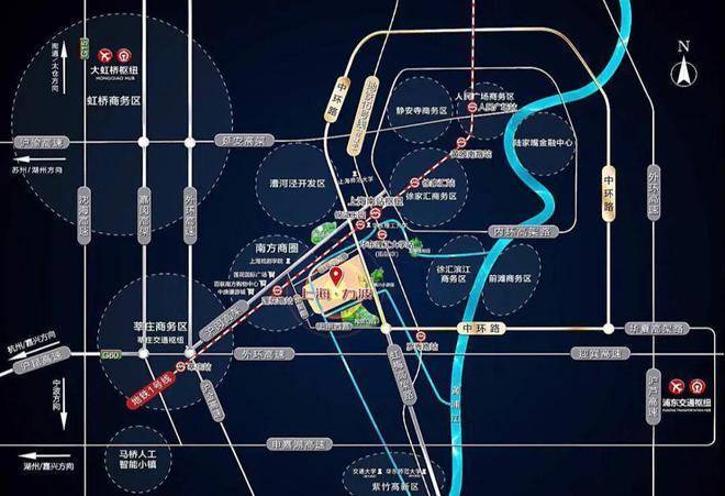 中环高架、沪闵高架、虹梅高架、嘉闵高架、外环高速、沪金高速,驾车约*分钟到达虹桥高铁站,驾车约*分钟到达浦东机场。
