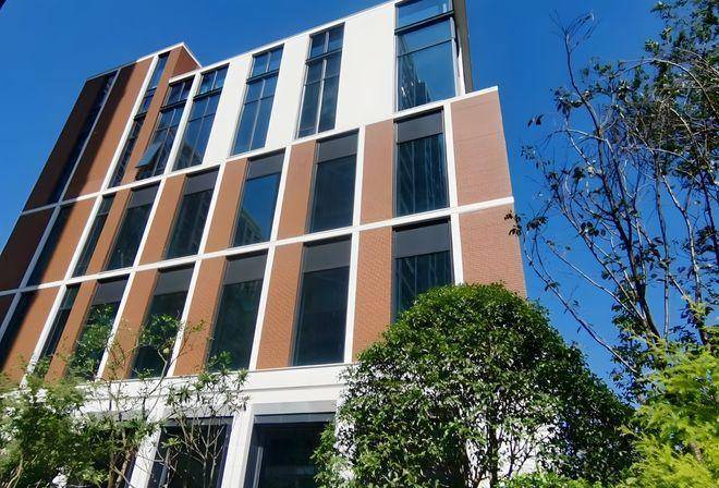 花园式独栋办公样板间已于2020年末对外开放,5层立体空间,面积1600-3500㎡,自带屋顶花园,外立面以红褐色饰面砖为主,呈现经典海派建筑风。