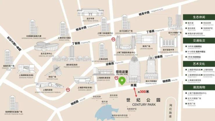 浦东新区政府、证监局环伺,上海图书馆东馆、博物馆东馆、东方艺术中心等文化地标密集分布,丁香国际商业中心、联洋广场、大拇指广场形成轻奢消费三角。