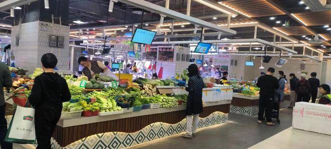 爱芯鲜新市场将网络进行数据对接调试,电子价签、监控探头等设备全面覆盖。市场科学划分为水果、蔬菜、肉禽等40个分类摊位,112个自产自销区及63间商铺,并配备有中央厨房,可进行鲜买鲜加工。