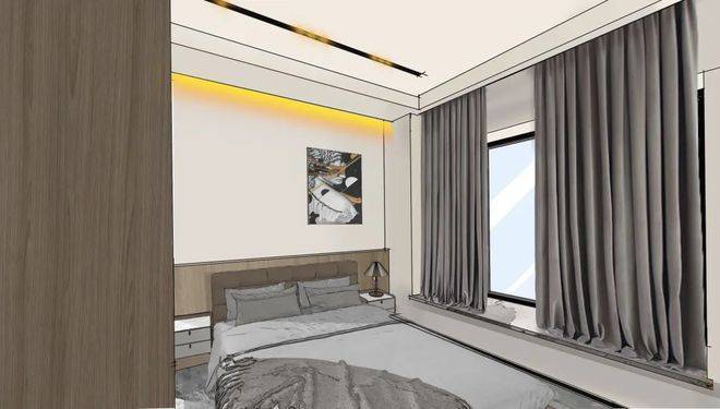 还有卧室空间,可以设计成带独立卫生间的套房,采光也充分,私密而舒适。