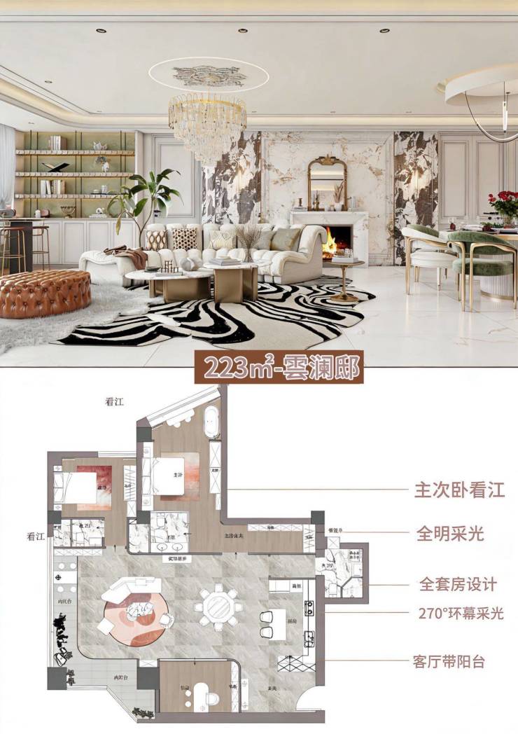 高区无遮挡瞰江视野,270°环幕落地窗,一城江景与天际线尽入眼底。