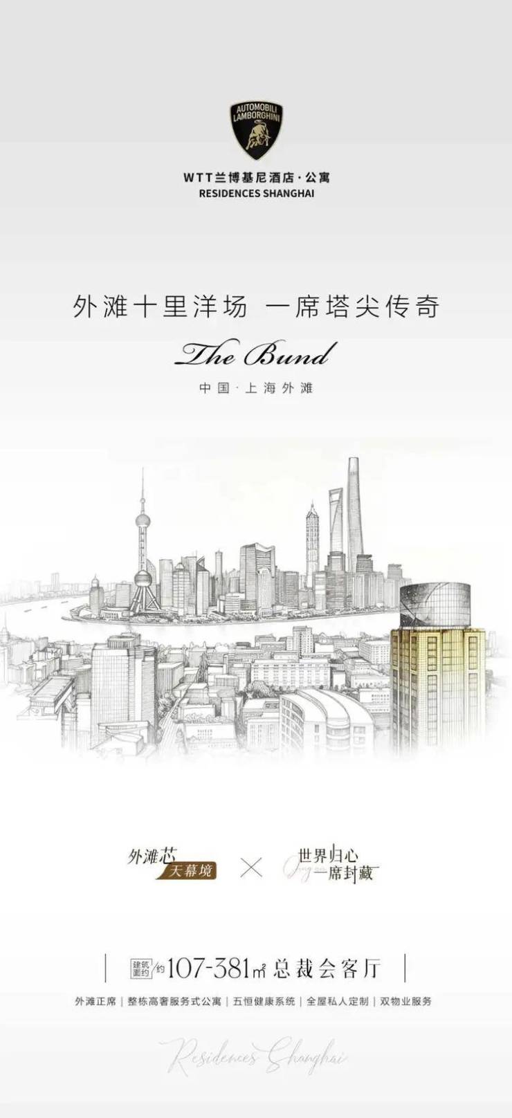 黄浦人民广场旁,推窗即揽黄浦江+四件套全景【WTT兰博基尼酒店·公寓】面积107~381㎡,总价900万起,不限购,通燃气