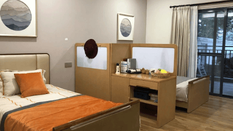 双人间:5000-8000 元 / 月 / 人,双控空调、护理床间距 1.2 米,兼顾隐私与相互照应,适配半自理长者