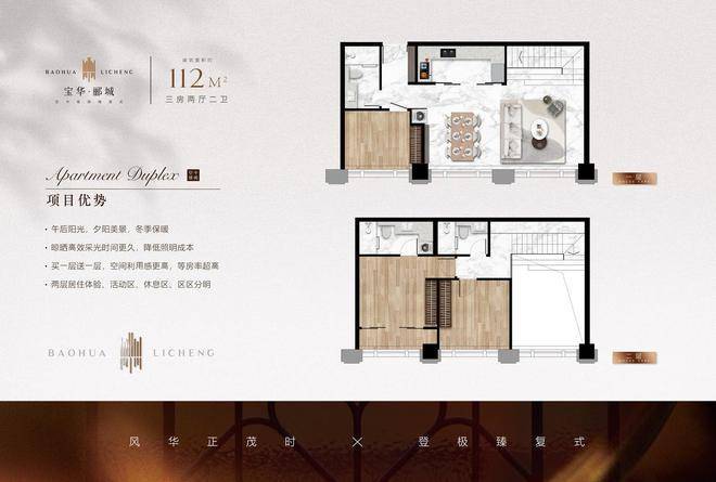 复式公寓:层高5.5米,面积112 179㎡,采用LOFT设计,买一层享两层空间。34
