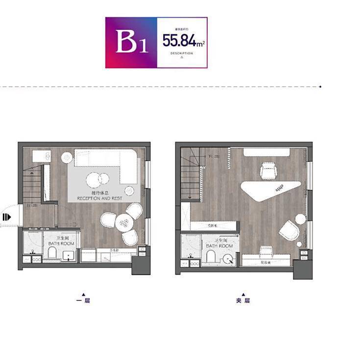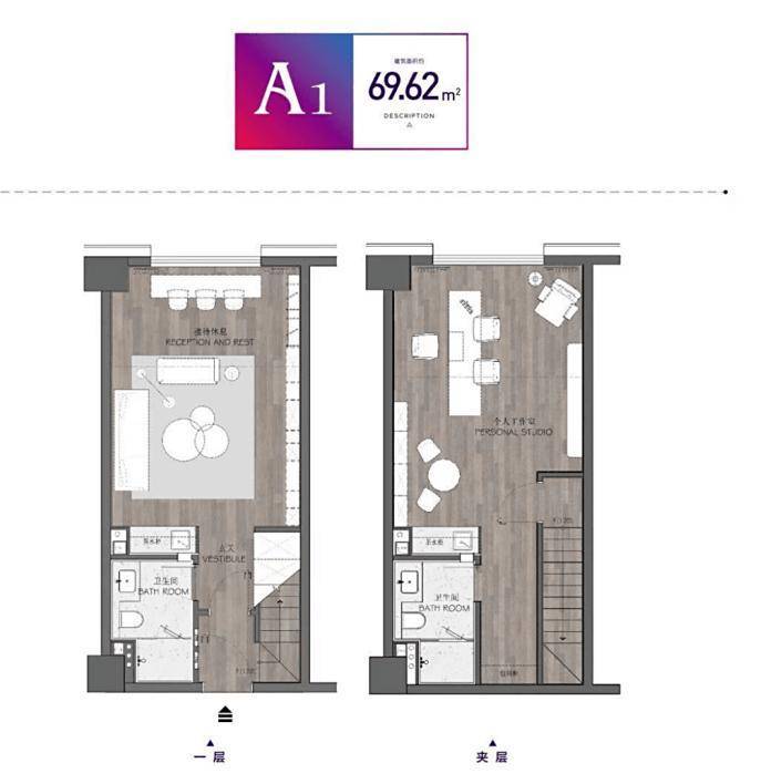 双入户,顾名思义就是把一套产品,设计成上下独立的两处空间,各自配备独立的功能分区,打破常规的产品理念,尽情发挥对空间的想象力。