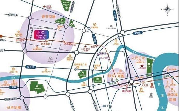 V格时代广场位于嘉定区,东起定边路,西至东栅桥路,南依14号线曹安公路站地铁出口,北靠市政河道。项目整体占地面积13630㎡,